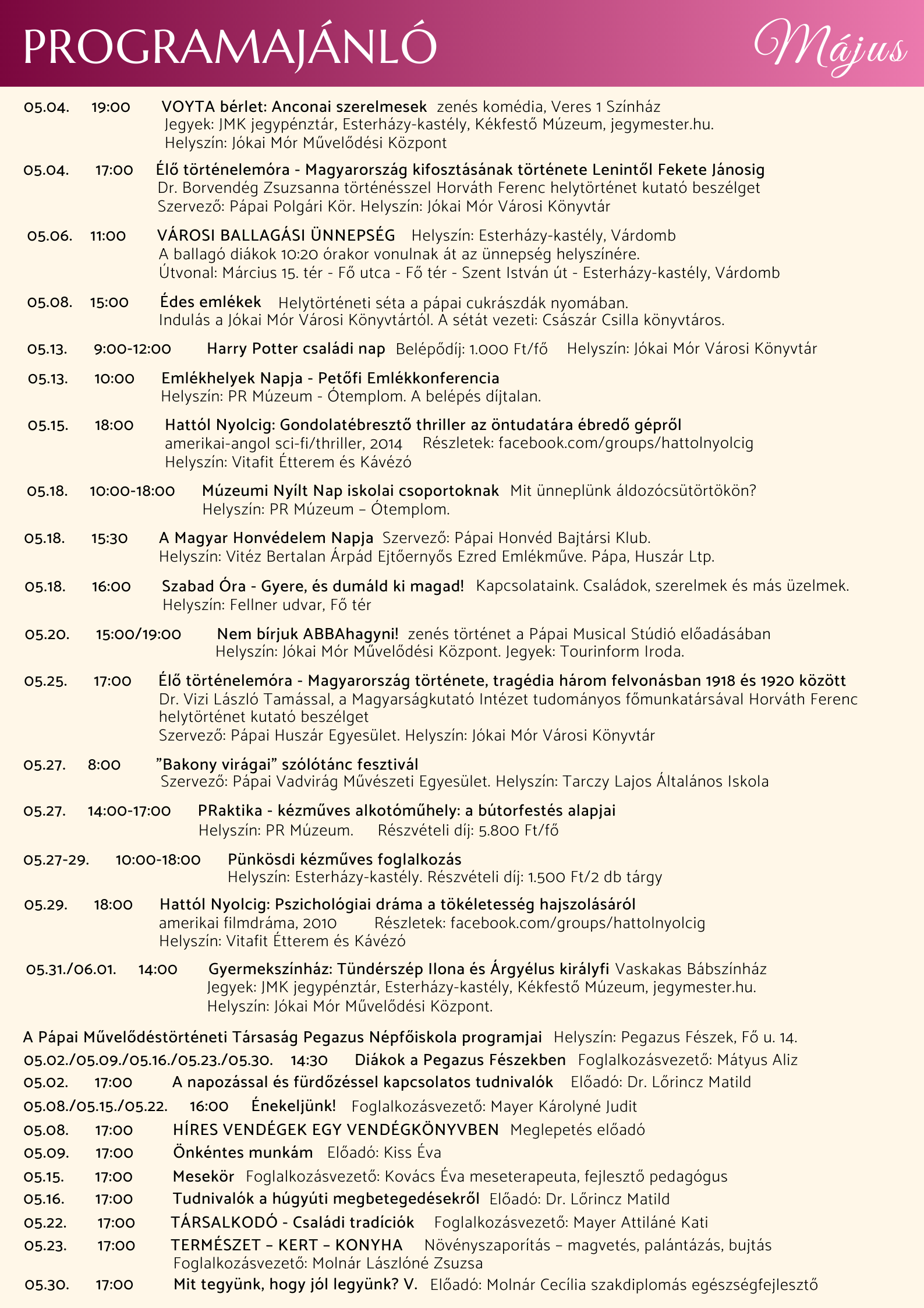 PROGRAMAJÁNLÓ